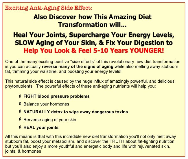 Imagine how great you'll look and feel when you KNOW the foods that are actually good for you, that boost your metabolism, heal your joints, MELT away stubborn fat, and FIGHT aging are actually DELICIOUS, loaded with nutrition, and satisfy your appetite!